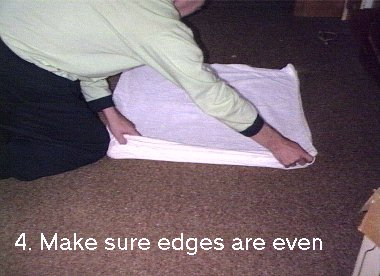 Making a pattern. First get several paper grocery bags from the supermarket. Carefully tear open the bottom seam of the each bag. Next trim the ragged edges of the bottoms of the bags to make rectangles of brown paper and tape them together with masking tape. Alternatively, you can use brown wrapping paper or white butcher paper bought in rolls or lengths. For the Origami or Rectangular fold, start by making a 48" square and fold as in the instructions above to see how it fits your baby. Instead of pinning, use masking tape. If the diaper isn't big enough, make a larger square and see how it fits. Warning: Cloth normally comes in 36" and 48" widths and rarely in 60" widths. Find out how wide a diaper fabric your fabric store carries or can order for you. If the store only carries or can order 48" widths, then you'll have to piece it. Use the paper pattern to calculate the size. Don't forget to make a seam allowance of at 1/2 to 1 inch on both pieces.