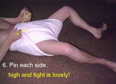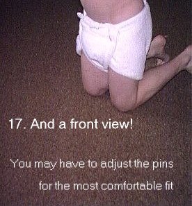 loop VelcroŽ across the front of the diaper. Next straight pin