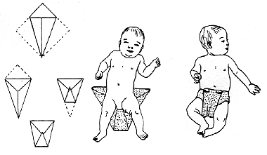 created by manual folding in an old-fashioned flat diaper. (Thus
